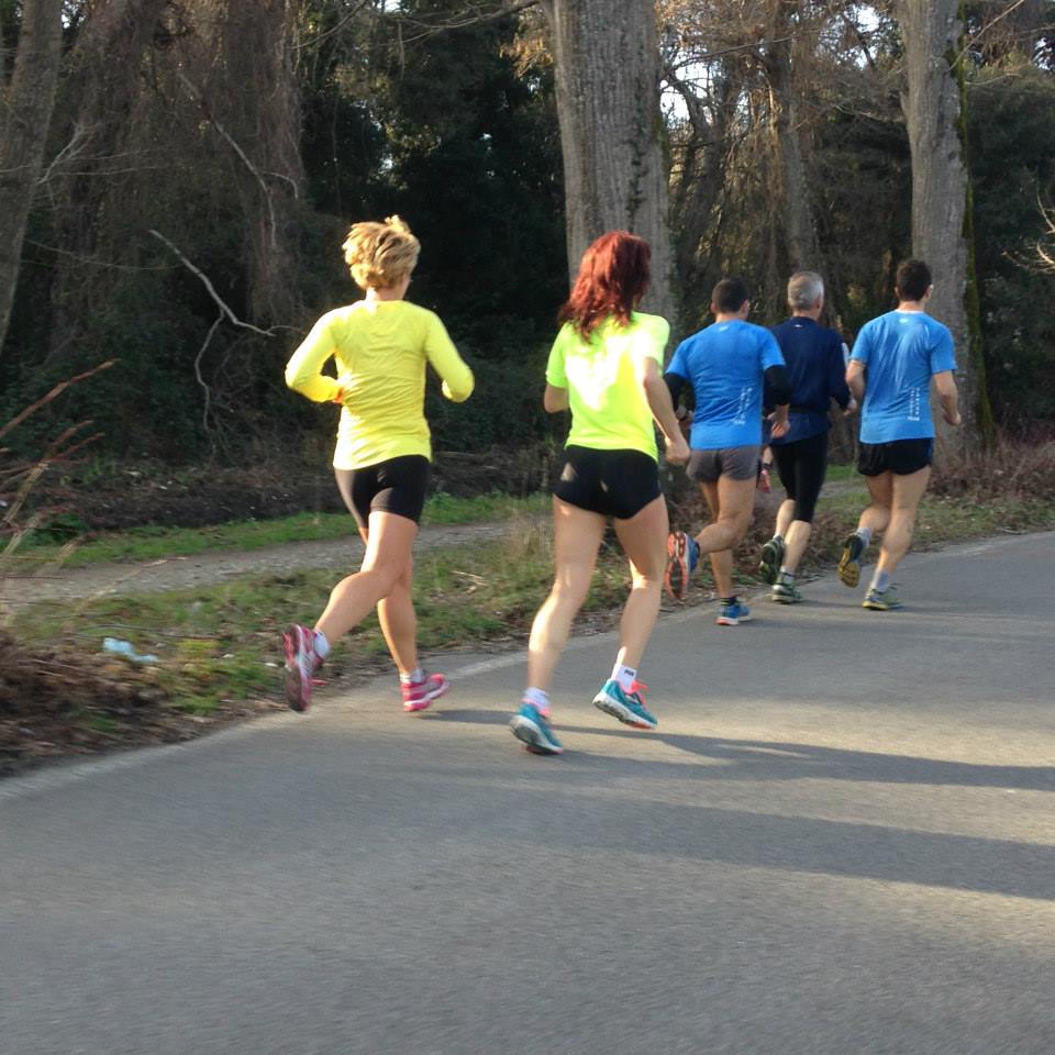 Riscaldamento al km 4,5 del Viale…anche il Mister ha corso con noi, seguiva Andrea, nuovo del gruppo, che doveva fare degli allunghi.