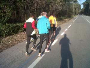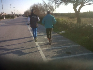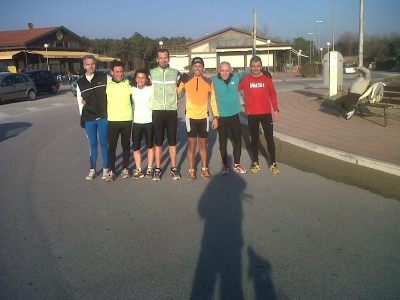 Ci siamo ritrovati tutti fuori dalla spiaggia a Torre del Lago, sembrava di avere le molle sotto i piedi, e dopo la foto di gruppo e un recupero di 6/8’ cominciava per noi la seconda parte dell’allenamento ma questa volta su asfalto…..io e il Paolini dovevamo correre 3×1.000 al ritmo di 3’50” con recupero di 2’30”, si è unito a noi Fabio approfittando del terreno duro ma non è che abbia migliorato la situazione al suo ginocchio, io ho chiuso le prove in 3’48”, 3’50” e 3’52” mentre il Paolini e Fabio riuscivano ad aumentare il ritmo finendo con qualche secondo di anticipo.