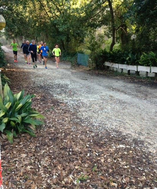 Riscaldamento al km 4,5 del Viale correndo i primi 2 km all’interno della pineta