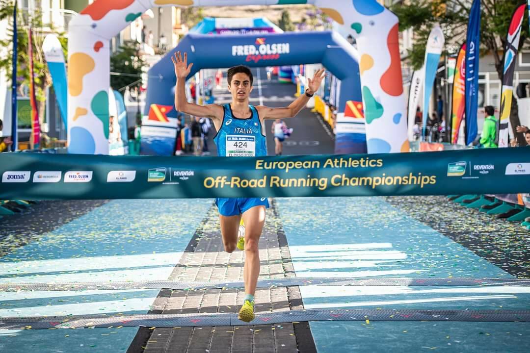 Aneddoto sportivo (aneddoto, curiosità, esperienza…): nel 2021 a fine stagione, mi è stato proposto di provare a correre le qualificazioni per gli Europei di cross. Mi sono presentato alla gara senza pretese e in modo molto spensierato. Alla partenza sono rimasto imbottigliato e mi ricordo i primi atleti che stavano andando via. Ho subito iniziato a recuperare posizioni, ma la gara stava per concludersi. A 1000 metri dall’arrivo mi sono accorto di essere in coda al gruppo di testa, ho incrociato lo sguardo con il mio allenatore e sono partito in una volata pazza. La gara è finita con la mia vittoria afferrata all’ultimo istante passando sotto il braccio del mio avversario che stava già esultando. La cosa più divertente è stata l’intervista post gara in cui ero incredulo di ciò che avevo appena fatto e che mi è costata molte prese in giro per la mia scarsa abilità al microfono!