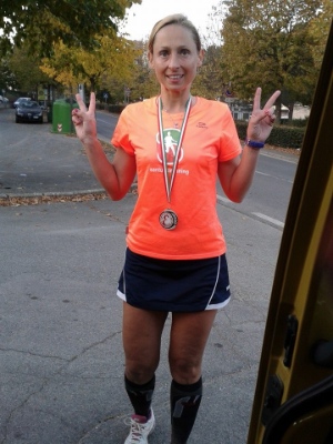 Proseguo senza problemi immersa in questa cartolina naturale, con le sfumature dell’autunno e varie opere d’arte moderna disseminate lungo il percorso. Passaggio al 30º in 3h12′, le gambe stanno bene (gli allenamenti in montagna aiutano, sono più forte in salita che in discesa!).