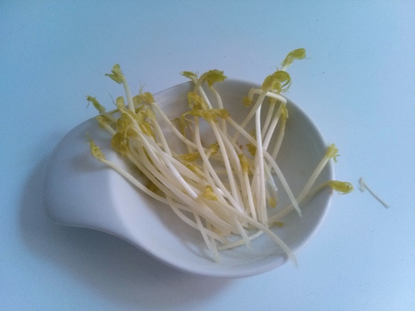 Questo germoglio, confuso molto spesso con la soia e chiamato impropriamente soia verde, deriva dal fagiolo Mung verde.