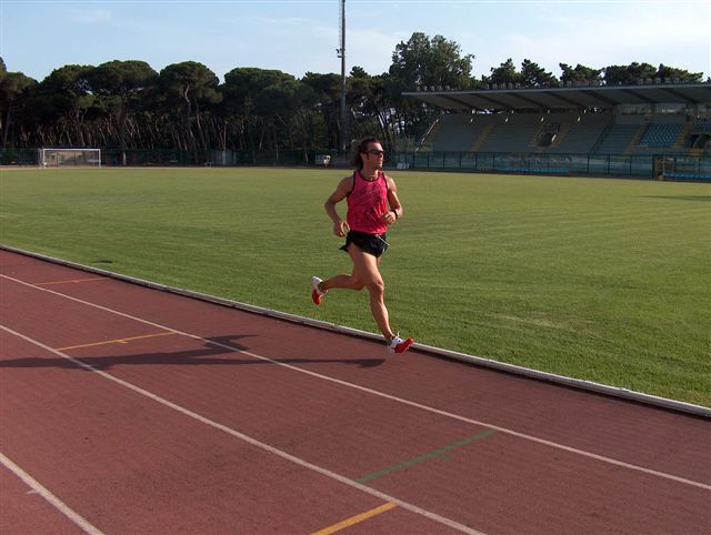 Potremmo inserire un paio d’allunghi di 100 metri recuperando almeno 1’ camminando, di seguito un allungo di circa 60 metri a velocità più intensa per poi chiudere con un paio d’allunghi di circa 30 metri a velocità piena, ma rilasciando subito e non provocare produzioni lattacide inutili.
