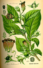 La atropina o DL-giusciamina funziona come antagonista di alcuni neurotrasmettitori, diminuendo le secrezioni bronchiali, fermando l’azione del nervo vago e modificando il battito cardiaco. In passato veniva usato per dilatare le pupille onde osservare il fondo oculare. Infatti agisce bloccando i recettori dei muscoli dell’occhio. Attualmente è poco utilizzata in questo ambito perché comporta gravi effetti collaterali ed un uso continuativo potrebbe essere causa di cecità. La iosciamina è uno stimolante del sistema nervoso centrale, e la scopolamina è un depressivo del sistema nervoso centrale. Entrambe hanno capacità antispasmodiche.