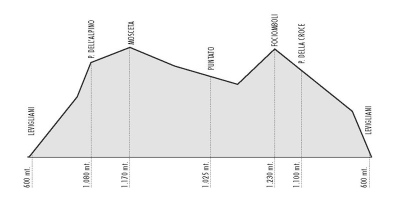 In località Il Puntato c’è un altro rifugio ma soprattuto inizia una salita durissima ma ombreggiata, la strada è ampia e sterrata si vede che ci passano dei fuoristrada, AMIGHO con i suoi passi brevi e veloci mi stacca non riesco a stare con lui mi prende 50 mt soffro ma di avvicinarmi non se ne parla, eccoci finalmente al ristoro di FOCIOMBOLI siamo a quota 1270 …..cavolo siamo partiti da 600 e siamo a 1270 non male, arrivano tutti alla spicciolata…..foto di gruppo (vedi immagine) e poi la discesa prima su terreno sterrato e poi dal Passo Croce in asfalto, lunga e faticosa.