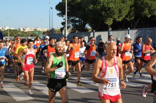 Oggi finalmente ricomincio a fare qualcosa (altrimenti mi ritrovo nel libro degli ex-atleti!!). Marco è partito prima da solo aveva un lavoro piuttosto lungo e impegnativo, doveva correre 5×3.000 al ritmo di 3’30” e tra una prova e l’altra recuperava 1×1.000 al ritmo di 4’30”, chiudendo tutto il lavoro con 1×1.000 forte. Un buon test come preparazione di una mezza maratona da correre tra poche settimane. Noi abbiamo fatto 20′ di riscaldamento per tornare al km 1 sul lato campestre del viale organizzati con le freccette per segnare i passaggi ogni 100 mt. Io, Alberto, Fabio, Massimo, Cristiano, Andrea e Massimiliano dovevamo correre 6×300 in 1’/1’03” con recupero di 1′. Naturalmente io e Massimiliano, che siamo ripartiti ora con gli allenamenti dopo problematiche varie, facevamo i fanalini di coda correndo le prove sopra 1′ mentre gli altri le chiudevano sui 55″. Da lì, 5′ di corsetta fino a tornare allo stadio e correre 6×200 in pista in 38″/40″ con recupero di 1’30”. Massimo in pista!!!! Non credevo ai miei orecchi quando ce l’ha proposto! Terminate le prove abbiamo concluso il lavoro con 3 giri di campo come defaticamento.