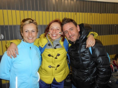 Al 30°km ci sono arrivata intorno alle 3h05′ ma ho perso 5′ al bagno (c’era la fila e non ce l’avrei fatta ad aspettare altri 5 km), di lì in poi non ho avuto molti problemi, solo leggere contratture ai polpacci e ai muscoli anteriori delle cosce, ma niente di così serio e ogni km che conquistavo mi si apriva un sorriso a 32 denti di soddisfazione! Mio marito mi diceva che ero l’unica che sorrideva! Dopo il 35° sono ricomparsi i sampietrini che mi facevano male sotto le piante, infiammate, dei piedi e le salite che mi facevano bruciare i muscoli, ho preferito andare a passo perché si contraevano troppo, bruciavano e avevo paura dei crampi….facevo 100mt a passo poi ripartivo in souplesse e poi aumentavo (dopo il 30° ho smesso di guardare l’orologio x l’andamento!). Ultimi 3-4 km veramente critici x le gambe, la testa c’era, il respiro è sempre stato buono ma le gambe se provavo a tirare, mi facevano troppo male! Non ho mai avuto fame.