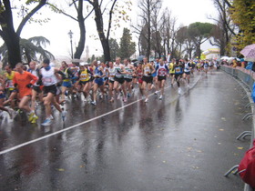 Voglio iniziare dicendo che non ho raggiunto il mio obiettivo: fra il 24/mo ed il 25/mo chilometro la mia gamba destra ha deciso che non era più il caso di continuare a quei ritmi, permettendo ai pace delle tre ore di filare via anche senza di me, lasciandomi per un paio di minuti dolorante ed incerto se tornare in albergo o proseguire, ma permettendomi poi di finire al piccolo trotto con un onestissimo 3.14.47.