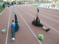 Ancora belle giornate con temperature gradevoli e il gruppo rimane sempre numeroso. Riscaldamento abbastanza brillante, dove naturalmente io sono la prima accusata dell’andatura, fino ai 4,5 km del viale. Alberto e Massimiliano Paolini doveva correre un frazionato di km 4 alternando 300 mt in 1’06” e 200 mt in 1’, io e Nello dovevamo correre dei 300 mt, io ne avevo 10 da correre in 1’03” e Nello 12 in 1’01/03” con recupero di 45”, naturalmente chiudevamo le prove insieme tutte in 59”/1’. Mirko e Marco anche loro correvano 12×300 ma ad un ritmo ben diverso, 54”/56” con recupero di 50”, Fabio doveva correre 6×1.000 al ritmo di 3’45”, Ivano aveva un frazionato di 9 km alternando 1 km al ritmo di 3’50” e recuperando nel successivo km a 4’20” . Virgilio e Andrea avevano 2×1.500 da correre al ritmo di 3’40” e 3×1.000 al ritmo di 3’32/33”. Maurizio aveva 6×1.500 al ritmo di 3’40” ed ha corso i primi 2 insieme a Virgilio e Andrea in modo da poter lavorare in compagnia. Massimo è tornato indietro con Giorgio, che doveva terminare l’allenamento con degli allunghi in scioltezza, seguendo lungo il viale le nostre prove. Il ritrovo come sempre è stato alla Vietta per tornare insieme verso lo stadio.