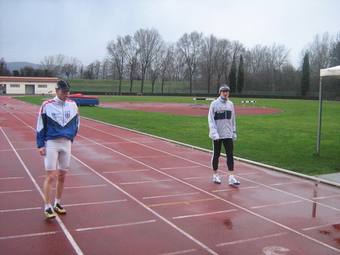 Zerini e Scuro in allenamento a Lucca in una giornata di pioggia